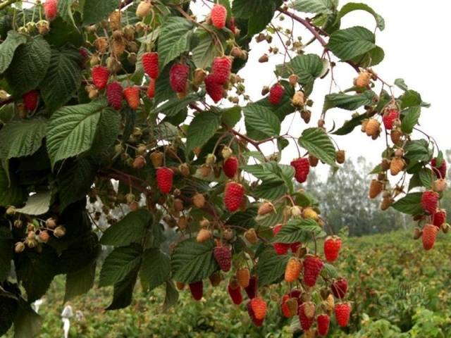 Muy a menudo, las frambuesas amarillas y rojas, que tienen brotes erectos bastante poderosos y fuertes, se liberan en "natación libre". No crecen más de 180 cm, no se doblan, incluso con altos rendimientos.