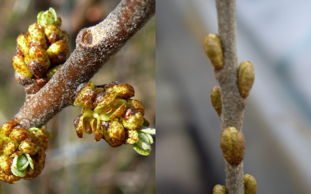 La diferencia entre un árbol de espino amarillo macho y hembra también se puede encontrar en la forma de las hojas. En la planta masculina, la placa de la hoja es plana, en la hembra está curvada en forma de cuenco. Las diferencias entre el espino amarillo de un niño y una niña también están en la forma de las flores y su color. Las flores femeninas son amarillentas, recogidas en inflorescencias, las flores masculinas son plateadas, verdosas.