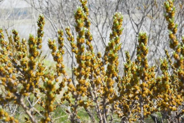 Las flores de espino amarillo no tienen nectarios, por lo que no atraen insectos. Esta cultura es polinizada solo por el viento.