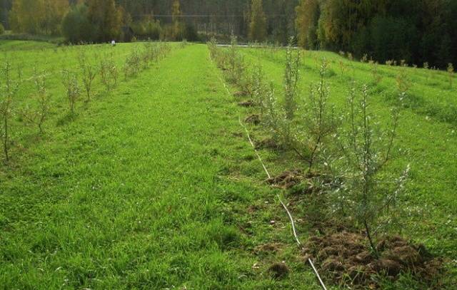Luego, las plántulas deben regarse abundantemente y el círculo del tronco del árbol debe cubrirse con aserrín, paja o pasto.