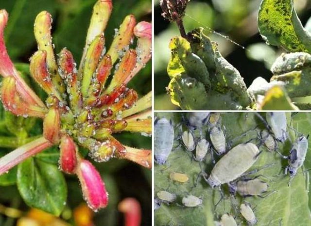 Si se ven plagas en el follaje, los arbustos de madreselva se tratan con insecticidas. Se reconocen como fármacos eficaces los siguientes: