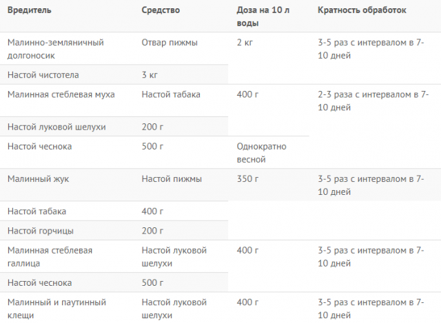 Los residentes de verano tratan enfermedades y destruyen las plagas en la zarzamora con la ayuda de remedios caseros. La lista de acciones se presenta en la tabla. El principal enemigo de la cultura es la flor blanca o el ácaro. De los medicamentos comprados en la tienda, usan "Skor" o "Saprol".