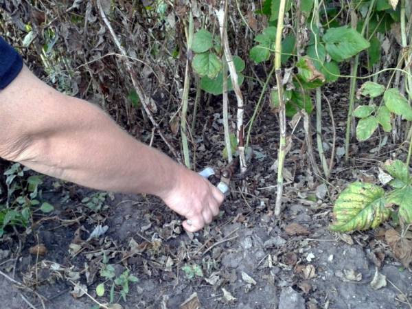 - Para obtener una cosecha, en el otoño, todas las ramas de la mora remontante se cortan hasta la raíz. En la primavera, crecen nuevos brotes fructíferos.