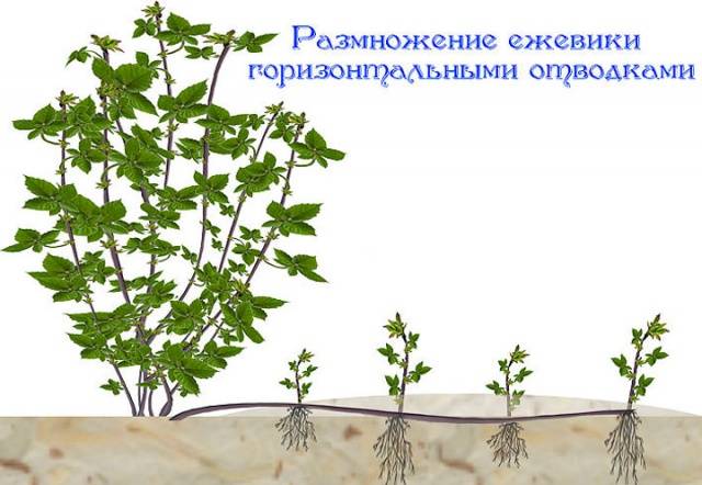 - Capas. En agosto, la pestaña se dobla hacia el suelo, se cubre con tierra, dejando solo la parte superior. La primavera siguiente, las plantas se cortan del arbusto madre y se plantan.