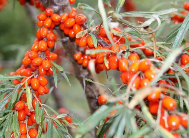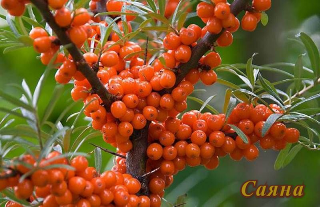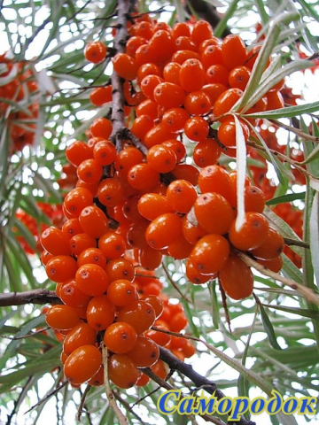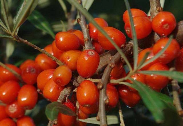 Las variedades de espino amarillo con bayas grandes (alrededor de 1 go más) son muy apreciadas por los jardineros.