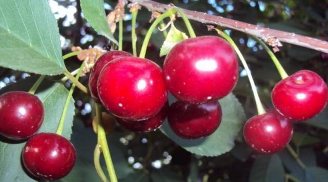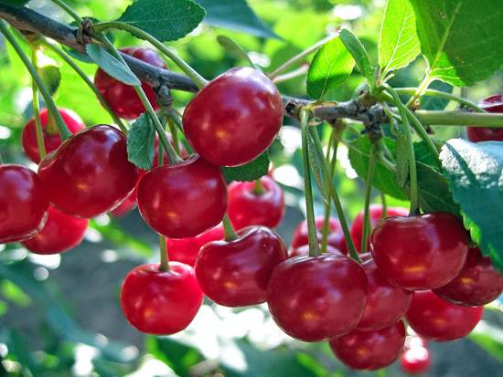 Cereza (Chereshenka) | junio | Hasta 15 kg | Alto | Promedio | Parcialmente autofértil | Kurchatovskaya, Troitskaya, Faro, Lyubskaya |