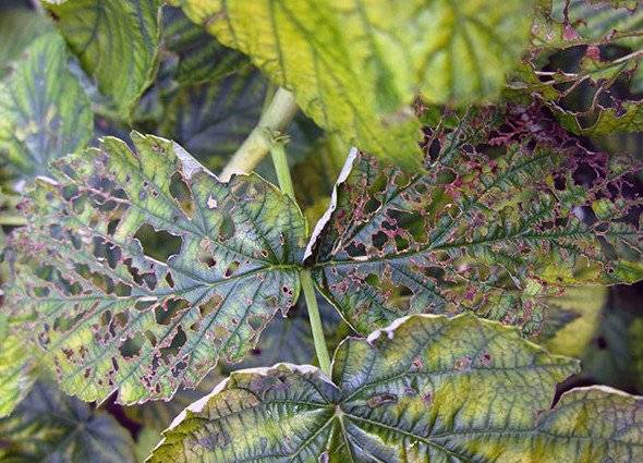 Las hojas de mora son muy atractivas no solo para varios tipos de pulgones, garrapatas, sino también para orugas y escarabajos pulgas.