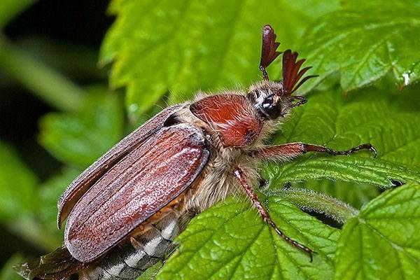 - Tenga en cuenta que a los escarabajos adultos les gusta darse un gusto con las aves: estorninos, torres y murciélagos. Y las larvas de la plaga son presas sabrosas para musarañas, topos e incluso zorros.