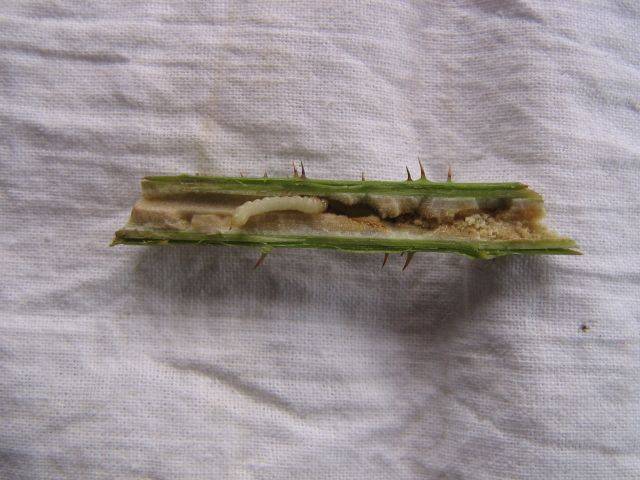 - Entre las plagas que viven en los tallos de las moras, hay muchas pequeñas, casi invisibles a la vista. Pero gracias a su actividad, las ramas y los tallos comienzan a marchitarse y a romperse repentinamente. Como resultado, la cosecha puede morir parcial o completamente, y la plantación de moras fuertemente infestada con ellos tendrá que renovarse por completo.