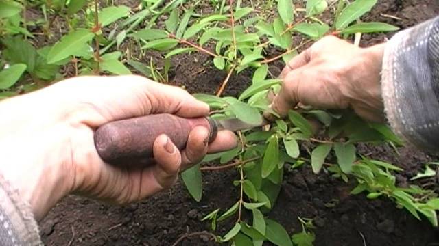 Después de los 15 años se cortan ramas en la base de la madreselva, ya los 20, si la cosecha ha caído, se lleva a cabo el rejuvenecimiento del arbusto. Para hacer esto, retire todos los brotes, dejando 15-20 cm. Las ramas crecerán la próxima primavera y la madreselva podrá dar fruto por otros 5-10 años.