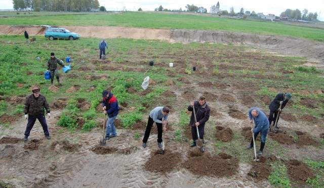 Se preparan pozos de siembra de 40x40x40 cm de antemano, se introducen 1-2 cubos de materia orgánica en cada uno (dependiendo de la fertilidad del suelo), 50 g de fertilizantes potásicos y de fósforo. Si es necesario, el suelo se desoxida con cal.