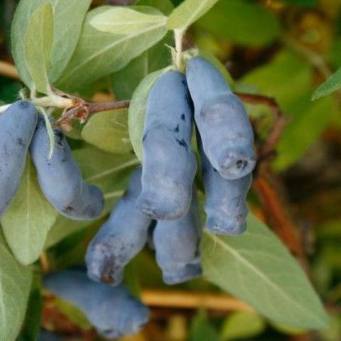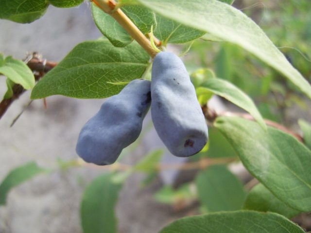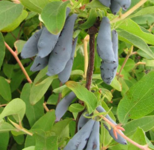 - Las bayas son de color azul oscuro con una flor plateada, en forma de hoz, la superficie es irregular. Longitud - 2-2,5 cm, peso - 1-1,2 g.
