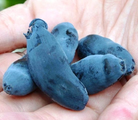 Registre bayas grandes, que pesan hasta 3 g, maduran abundantemente y de manera amigable, no se desmoronan. Es fácil recolectarlos, ya que la disposición de las ramas es bastante escasa y los frutos se encuentran en las puntas. Están cubiertos con una capa cerosa, azul oscuro, casi negra, en forma de huso. Agridulce, jugoso, de piel fina. Maduran en la primera quincena de junio. El rendimiento del arbusto en promedio alcanza los 2,4-2,8 kg de bayas por arbusto, y con el cuidado adecuado y un clima favorable, puede alcanzar hasta 4,5 kg. Las desventajas de la variedad incluyen la imposibilidad de recolectar a máquina las bayas maduras y la poca resistencia al transporte debido al aumento de la jugosidad y la piel fina.