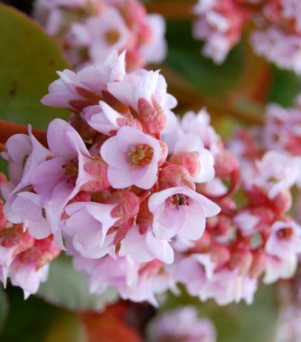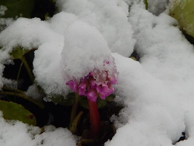 Algunas variedades de badan comienzan a florecer incluso en invierno.