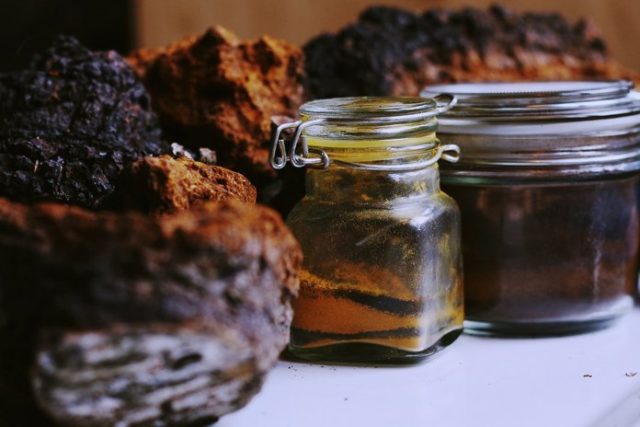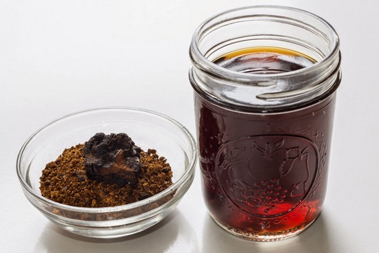 Se ha insistido durante mucho tiempo en Moonshine en varias plantas medicinales, incluido el hongo chaga, para obtener elixires milagrosos. La tintura de alcohol en chaga se considera curativa y se usa en terapias complejas para el tratamiento de muchas enfermedades. Puede recolectar materias primas usted mismo o comprar un hongo ya seco y triturado en una farmacia.
