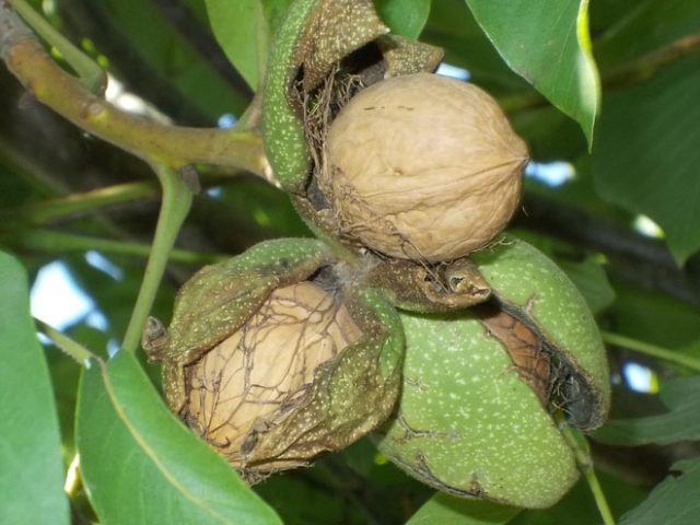 Si las frutas maduran solas, deben recolectarse después de romper la cáscara verde, cuando la fruta misma cae al suelo o se puede sacudir. Dependiendo de la variedad, esto ocurre en septiembre-octubre.