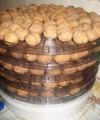 La duración del secado de las nueces al sol es de 3-6 días. En condiciones desfavorables, el procedimiento puede tardar hasta 10-12 días. Todo depende del tiempo.