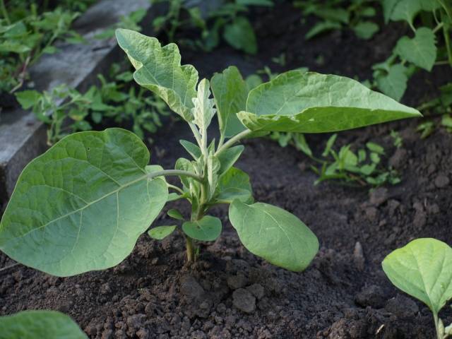 Preste la debida atención a la nutrición de las plantas. Cada 2 a 3 semanas, alimente las berenjenas con los fertilizantes minerales más delicados y los fertilizantes orgánicos alternativamente. La primera alimentación de las plántulas plantadas debe tener lugar en 2 semanas. Antes de cuajar los frutos, no alimente las plantas con fertilizantes orgánicos, que provocan un rápido crecimiento de la masa verde en detrimento de la formación del fruto.