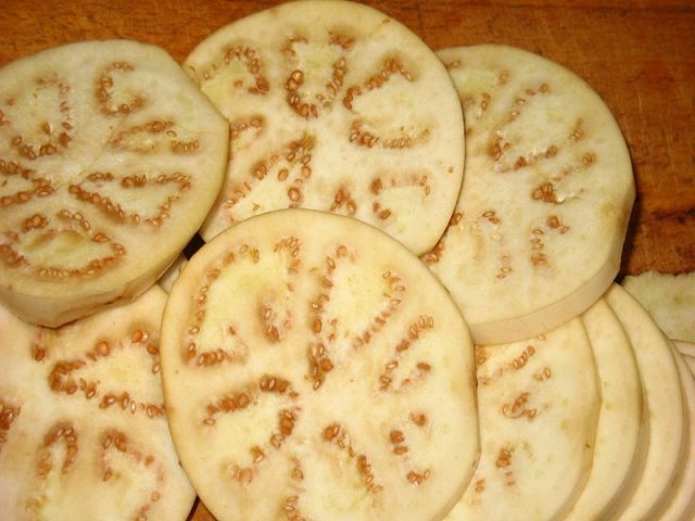 Cuando se congelan, las berenjenas blancas no pierden sus propiedades beneficiosas. Después de descongelar, puede preparar guisos, panecillos y bocadillos. La verdura contiene mucha fibra, lo que tiene un efecto beneficioso sobre el funcionamiento del tracto gastrointestinal.