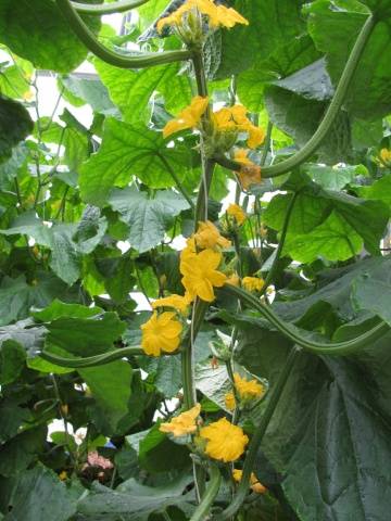 Se plantan en el suelo después de que la planta recibe 3 hojas verdaderas. Los frutos crecen hasta 10 centímetros de largo. La planta puede formar unos 10 ovarios a la vez.