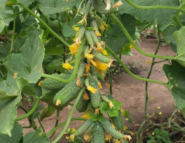 La principal y muy significativa ventaja de tales variedades de pepinos es su rendimiento inusualmente alto. La cantidad de ovarios en un ramo también depende de dónde se encuentre. Entonces, en las vigas inferiores, es demasiado grande. Mientras que en la parte media de la planta (especialmente en los brotes laterales) puede haber muchos más. Los signos de la presencia de un ramo son visibles durante el período de abundante floración y el comienzo de la fructificación, cuando la planta aún no ha comenzado a envejecer. La productividad durante este período suele ser la más alta.