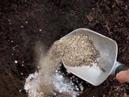 Los fertilizantes minerales se colocan en el agujero de acuerdo con las instrucciones, mezclados con arena y tierra.