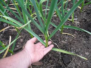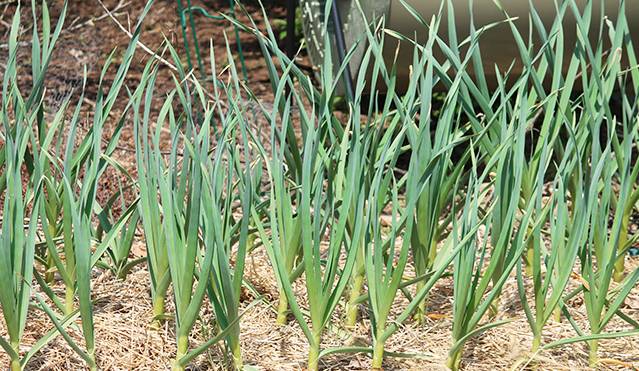 La alimentación primaveral de ajo con excrementos de pollo acelera el crecimiento de las plantas.