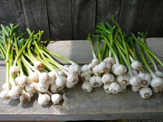Los clavos, plantados en otoño, germinan muy temprano, liberando plumas verdes. El ajo de primavera solo se planta en este momento. Naturalmente, la maduración de este tipo de verduras picantes se produce con una diferencia de casi un mes.