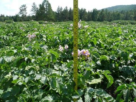 De hecho, la altura de las puntas de la papa no siempre tiene un efecto negativo en el rendimiento de la papa. Después de todo, hay muchas variedades que se caracterizan por una parte elevada sobre el suelo. Para ellos, la altura de un arbusto de papa dentro de un metro es prácticamente la norma.