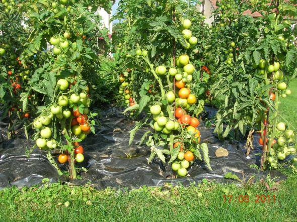De esta forma, se recomienda formar tomates semideterminantes en un invernadero, donde se mantienen las condiciones favorables para la fructificación del cultivo durante un largo período de tiempo. La formación de arbustos de esta manera le permite regular correctamente el proceso de fructificación del cultivo y detener el crecimiento del brote principal de manera oportuna.