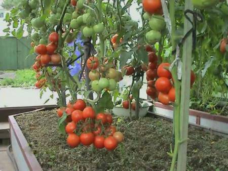Puede ver el proceso de formación de tomates determinantes en uno o más tallos en un invernadero en el video: