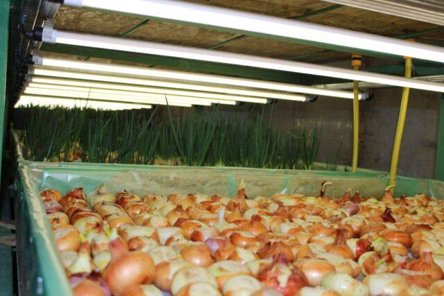 Durante el proceso de recolección, los bulbos usados se retiran de las células, se quitan las cáscaras viejas y se quitan las raíces con un cuchillo afilado.