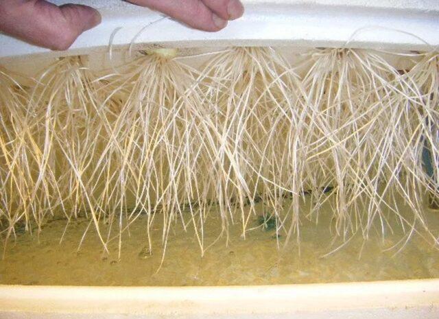 El método tradicional de cultivar cebollas en hidroponía es el agua, en la que las raíces se sumergen en una solución nutritiva especialmente preparada.