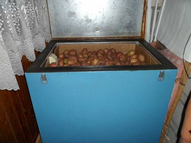 Caja de almacenamiento de patatas en el balcón en invierno se puede hacer la carga superior. Esto es muy práctico, especialmente para aquellos con un pequeño balcón. Por ejemplo, una caja puede ser estrecha pero alta. Teniendo esto en cuenta, la tapa se colocará en la parte superior. La tapa también debe estar aislada. Además, se puede cubrir con una manta resistente.