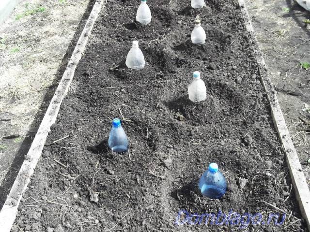 En un lecho nivelado, se realizan marcas: el paso entre las filas es de 45-50 cm, entre las semillas al menos 10.Luego se hacen agujeros, se agrega bicarbonato de sodio mezclado con pimiento picante a lo largo del borde para ahuyentar a las plagas que viven en el suelo.