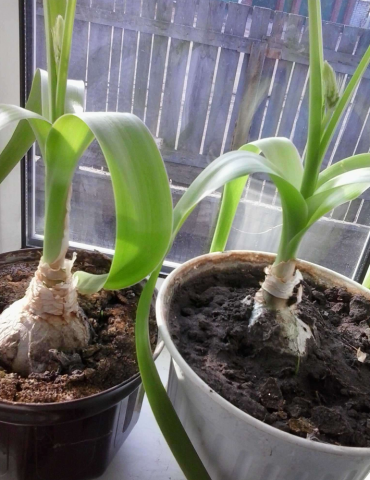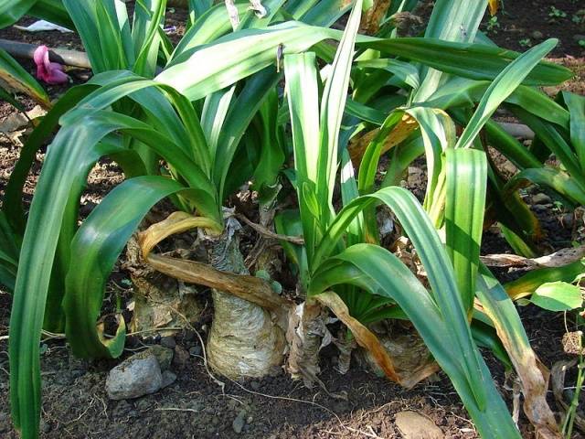 El bulbo está medio enterrado en el suelo, el resto debe elevarse por encima del suelo. La planta se riega abundantemente.