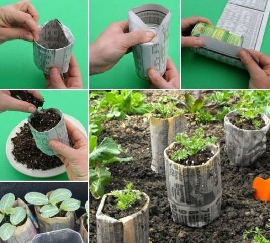El recipiente terminado se puede quitar de la plantilla y comenzar a hacer el siguiente vaso. Cuando se recolecta el número requerido de contenedores de papel, se colocan en un contenedor de plástico, se llena con tierra y se coloca toda la caja en un palé.