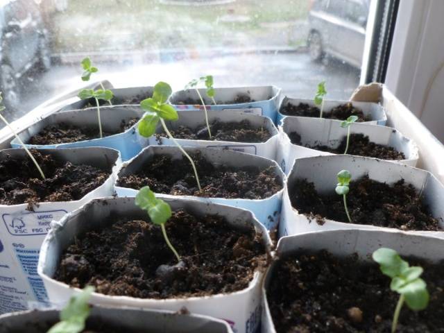 Para hacer cajas para plántulas, los tetrapaks se cortan por la mitad. Puede usar no solo la parte inferior, sino también la parte superior. El corcho del tetrapak no sobresale mucho, lo que permite instalar la segunda mitad en un contenedor común.