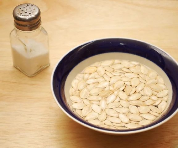 - Las semillas de calabaza deben remojarse en agua salada durante 2-3 horas.