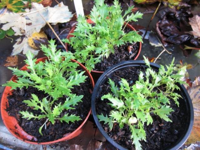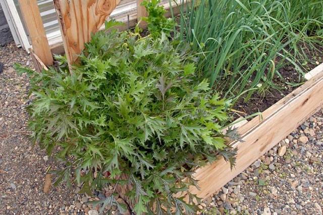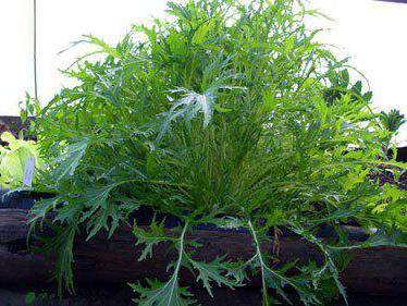 Si eres fanático de la verdura de hoja japonesa Mizuna, puedes desenterrar los arbustos y trasplantarlos a macetas en el otoño antes de las heladas. Al principio se mantienen en la terraza, y cuando hace más frío, se transfieren al apartamento. En la ventana aparecerá un pequeño invernadero con vitaminas, pero, además, este es un buen elemento de decoración.