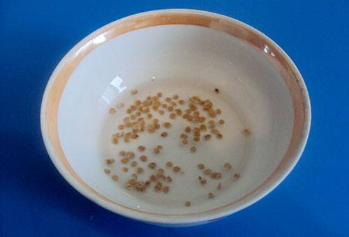 Para remojar las semillas de tomate, debe preparar una solución agregando 1 gota de la sustancia a 300 ml de agua. La duración del procesamiento del material de siembra con la sustancia obtenida debe ser de 2 a 4 horas. Se recomienda remojar inmediatamente antes de sembrar los granos en el suelo.