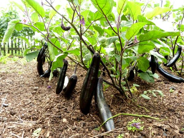 Las berenjenas maduran desde el momento de la germinación completa en noventa y cinco días. Los frutos suelen tener de veinticinco a treinta centímetros de largo. Pueden crecer hasta los cuarenta. Tal longitud de berenjenas con una altura de arbusto de solo cuarenta centímetros crea ciertos problemas para los jardineros en forma de berenjenas en el suelo.