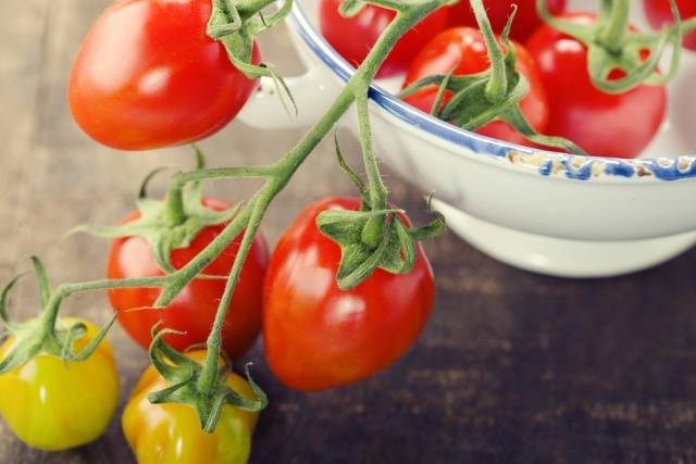 - tomates cherry de postre de tamaño pequeño, que a menudo tienen un sabor inusual para un tomate (fruta o baya)