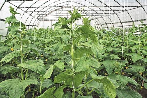 La formación de pepinos en un invernadero de policarbonato es la optimización de la estructura de toda la vid para aumentar los rendimientos.