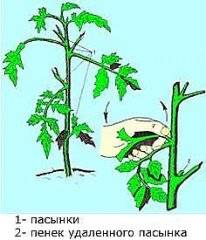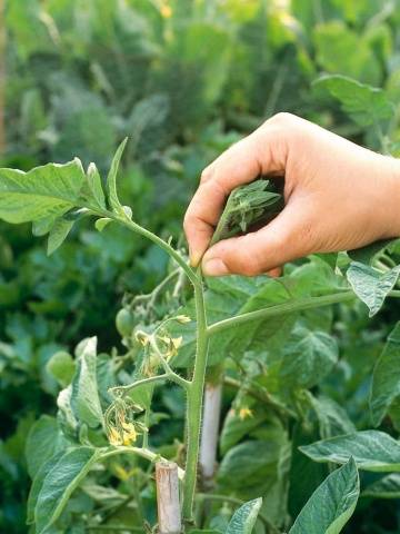 Un hijastro retirado correctamente debe dejar un muñón de 1 a 3 cm de altura, entonces no habrá más hijastros en este seno de crecimiento. Para prevenir una posible enfermedad de los tomates, el pellizco de tomates en un invernadero se realiza por la mañana en arbustos de tomate no mojados, comenzando con los más saludables y fuertes. Los arbustos que dudan de la enfermedad son los últimos en desaparecer. Esto es necesario para no provocar la posible propagación de una infección por hongos, por ejemplo, phytophthora.
