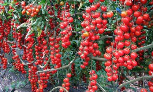 Entre los tomates cherry, hay poseedores de récords que forman enormes racimos, la cantidad de flores en ellos alcanza las 300. El tomate floreciente de este tipo es una vista increíble. Estos tomates crecen gradualmente y hay flores y frutos maduros en un racimo. Estos tomates son indetes. Deben formarse en un tallo, sin dejar más de 3 pinceles.