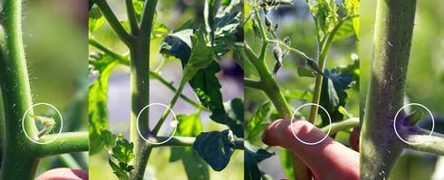 - Al pellizcar, es necesario dejar un pequeño muñón en las axilas, que no permitirá que se desarrolle un nuevo brote lateral en la axila de esta hoja.