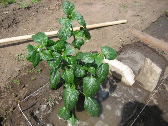En las crestas, las plantas de pimiento milagroso de California se plantan de acuerdo con el esquema de 40x40 cm. Dado que, a medida que el pimiento crece y se desarrolla, es más necesario un riego uniforme, puede construir un sistema de riego por goteo para él. Es especialmente importante no olvidarse de regar los días calurosos.
