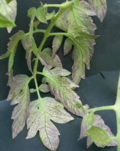 - Si, al examinar los arbustos, se revela una vena roja en el exterior de una hoja de tomate, entonces la planta indica una falta de suelo. fósforo... Es necesario encargarse de reponer la deficiencia de este componente y fertilizar los tomates.
