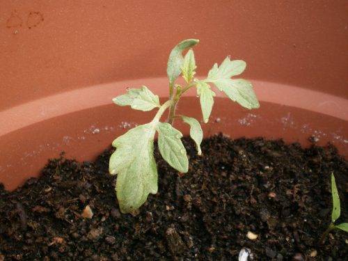 Lo mismo sucede con las plántulas de tomate, cuando el suelo contiene demasiados fertilizantes minerales, el suelo está "salado".